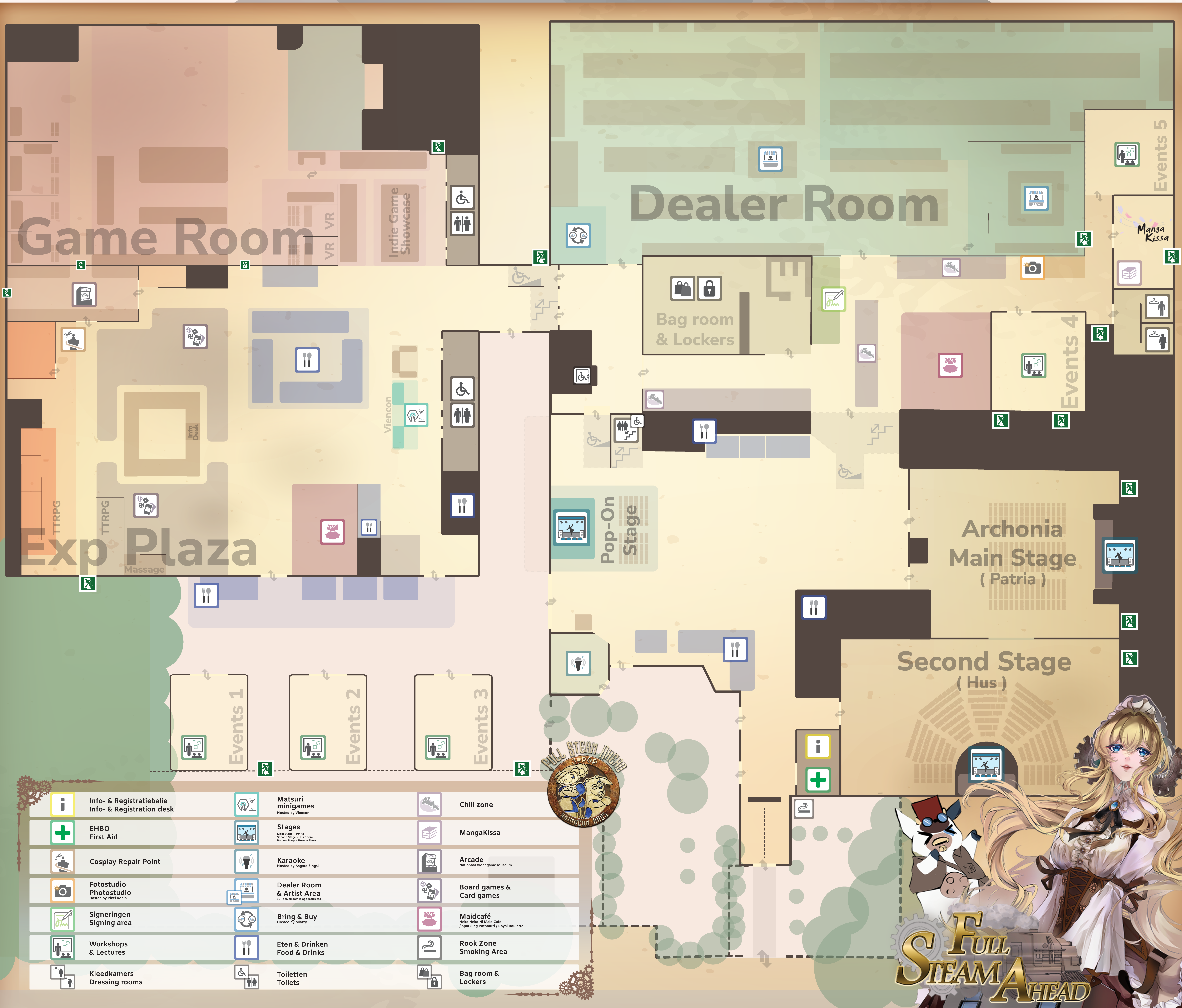 AnimeCon uses all of the space The Broodfabriek has to offer: over 17500 m2! The location consists of several halls and rooms as shown in the overview below.