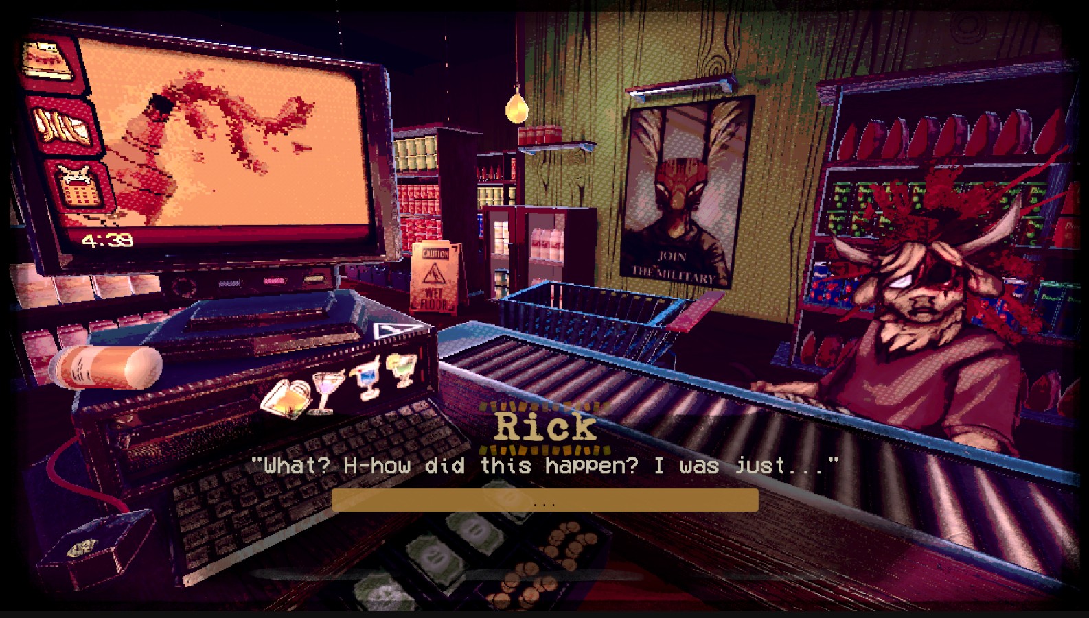 Rick's Konbini takes place in a generic convenience store at the start of the 21st century, enjoy a unique narrative game as a retail worker with "cute" characters as customers. Play arcade styled mini-games for your daily tasks! Have engaging [choice-based] dialogue moments with your customers, and check any suspicious behaviour by interrogating them! Trigger quests and side-stories with unique dialogue.