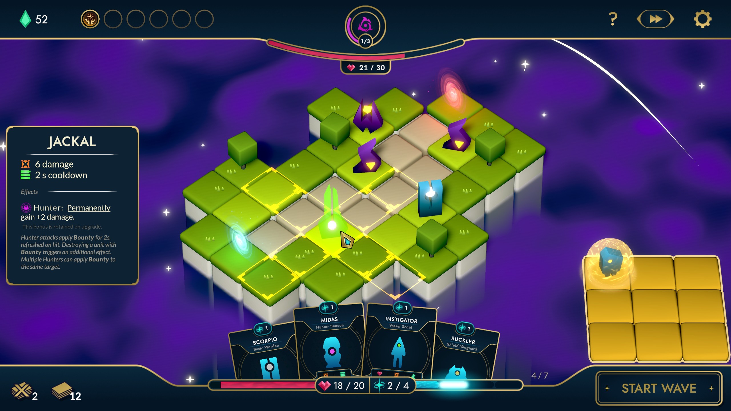 Arbiters Dream is a rogue-like deckbuilder with tower defense combat where you split your resources between building defenses and launching attacks, adapt to recurring waves that reset the battlefield, and craft powerful synergies from 120+ cards and 80+ blessings. Play as a cosmic Arbiter, protect your growing universe, and banish the anomalies threatening its existence.